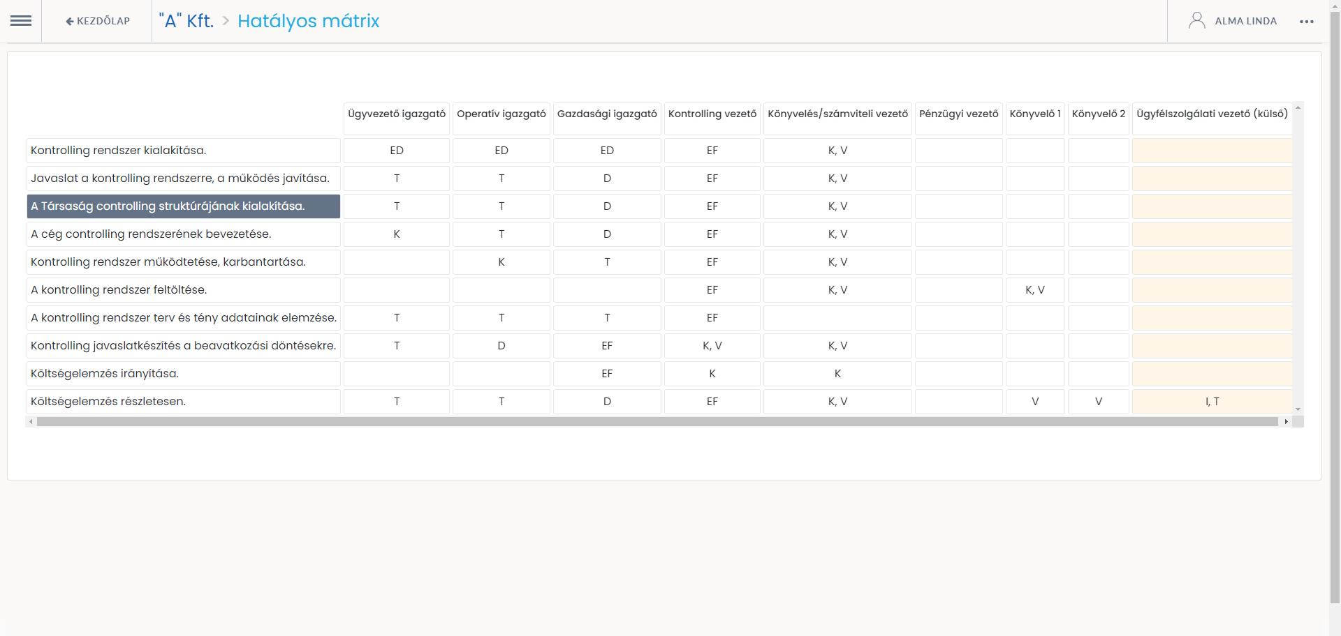 Szerkesztheti, jóváhagyhatja vagy hatályossá teheti a hatásköri mátrixokat.