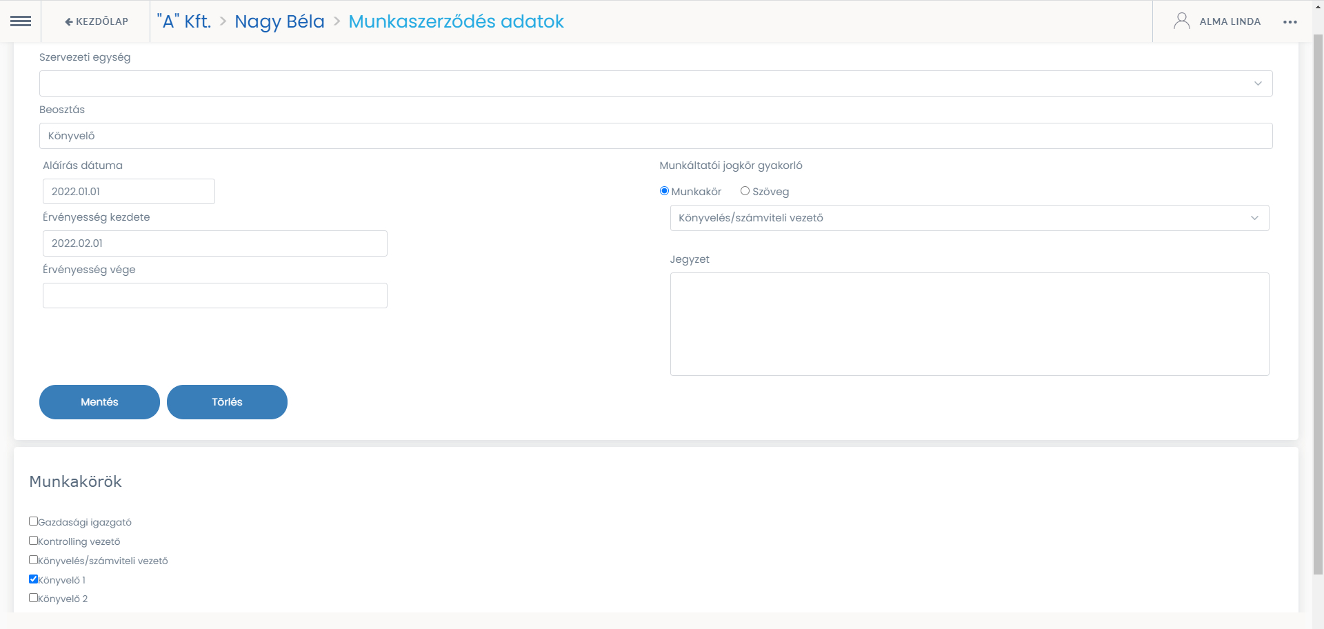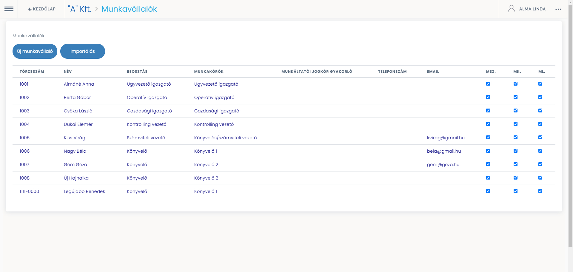 Rögzítheti a különböző munkaköröket és az azokhoz tartozó vezetői jogköröket.
