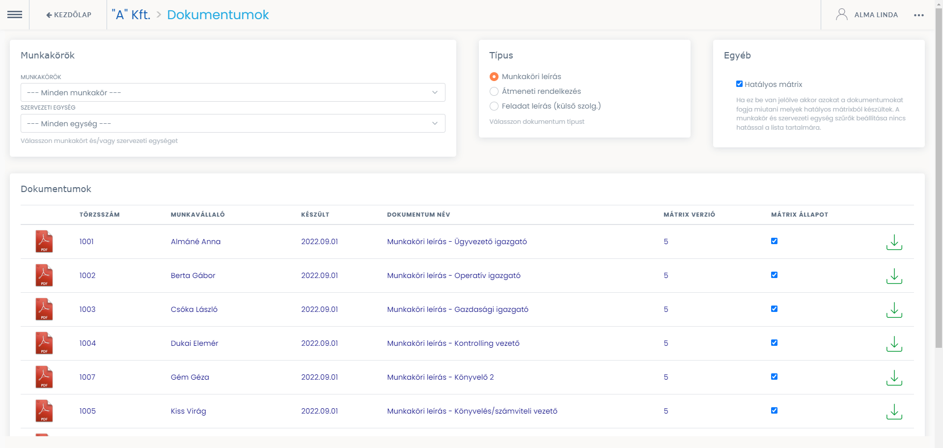 A hatályos mátrix alapján munkaköri leírásokat készíthet pdf formátumban.